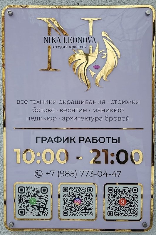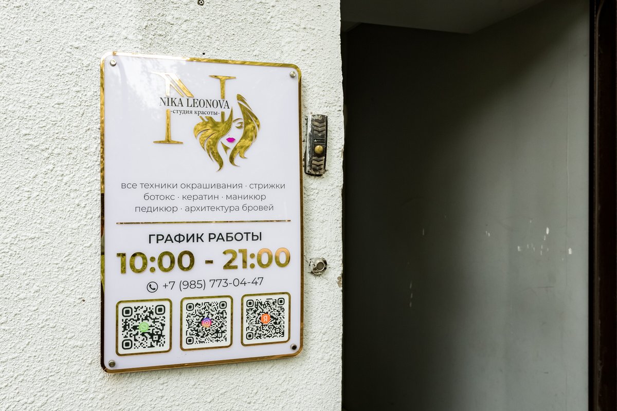 Вам все еще кажется, будто салоны красоты - причуда и ненужная трата денег? Приходите в салон красоты Nika Leonova и убедитесь в обратном! Безупречный профессионализм наших парикмахеров, визажистов и nail-мастеров не только обеспечит вам уровень ухода, недостижимый в домашних условиях, но и даст шанс по-настоящему преобразиться, найдя себя в новом стиле. В салонной атмосфере вы забудете о стрессах будней и испытаете тот уровень заботы, который никого не оставит равнодушным!